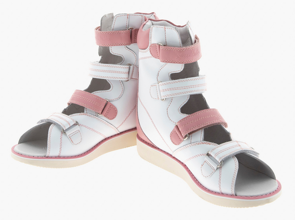 Сандалии изготавливают из нат.кожи. Обеспечивают их жесткой задней частью и берцами, которые отлично поддерживают стопы при их отклонениях. Высокий берец необходим для иммобилизации движения голеностопа. Это дает возможность суставам развиваться правильно или предотвращает развитие деформаций, эффект достигается при регулярном ношении.